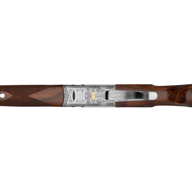 Chosen as the best new shotgun by a panel of experts at Outdoor Life Magazine, the Magnus Light is truly an extraordinary shotgun. Now we have decided to make it even better. We have dramatically enhanced the engraving with ornamental scroll and gold game scenes while not changing the price. It weighs an astounding six pounds in twelve gauge. Every detail is carefully considered to reduce weight and maintain balance. The frame and fore-end iron are machined from a solid forging of the best aircraft grade aluminum alloy. Durability is insured through the use of hardened steel at all high-wear points. To make the gun as light as possible and maintain perfect balance, we hollow the stock and craft the fore-end hardware from the same alloy as the receiver. If you hunt demanding terrain or just appreciate a light, responsive bird gun, the Magnus Light is the shotgun of choice. Every Caesar Guerini field gun comes with a velvet lined lockable hard case and five precision patterned flush chokes (CYL, IC, M, IM, F). A plastic choke case is also included.