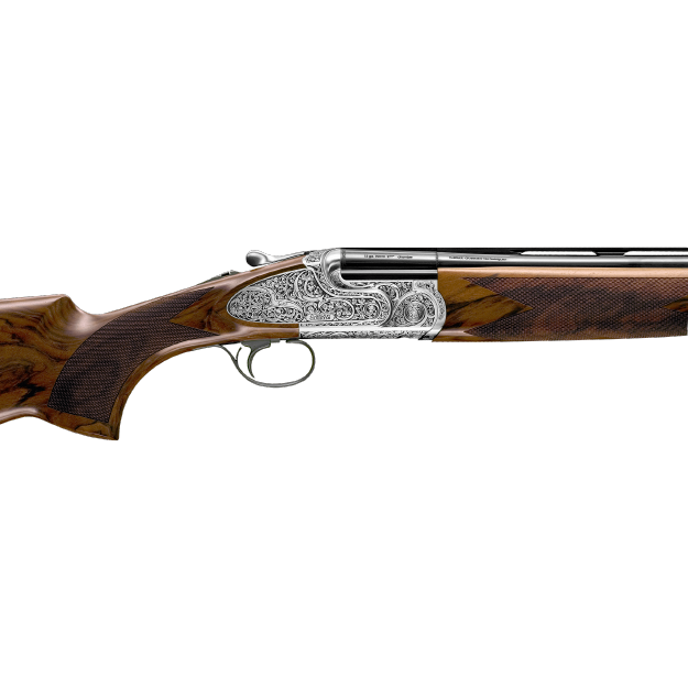 The Maxum Sporting is truly a stunning over/under shotgun. The deep relief gothic scroll hand finished engraving on the receiver, side plates, and fore-end assembly make this sporting gun unique among others on the clays course. The handwork and design are from the studios of the world renowned Italian engraving house, Bottega Incisioni C. Giovanelli. The coin finish frame is painstakingly hand polished. Balancing the beauty of the deeply sculpted engraving is a deluxe grade of Turkish walnut, featuring precision cut 26 lines-per-inch checkering and a natural oil finish, hand rubbed to a sheen that enhances the highly figured wood grain.