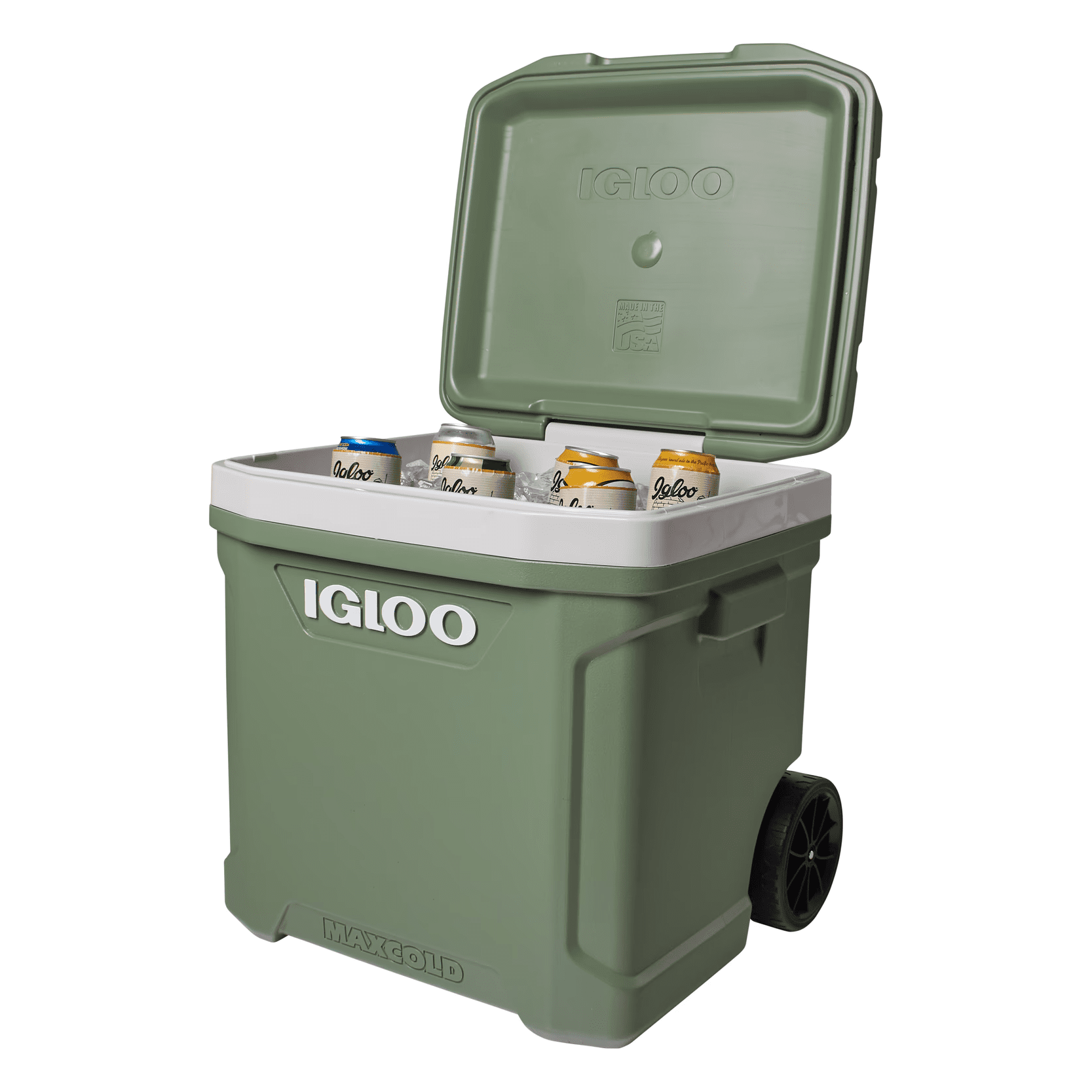 - Locking, telescoping handle enables cooler to be pushed or pulled for super easy transporting