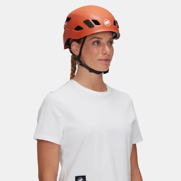 Our legendary Mammut Skywalker 3.0 Helmet – Orange is a versatile helmet for a full range of climbing adventures. The hybrid construction uses a cutting-edge combination of an EPP and EPS inner shell in a robust hard shell. Foam padding over the entire inner surface offers reliable protection from impact, even on the side, front and rear. The fine-tuned design includes features like matte surfacing on the outer shell, large ventilation openings, and easy, one-handed size adjustment. The helmet sits compactly and has additional inner cushioning to better cater to the unique size and shape of your head. Durable, robust and easy to pack with stowable straps, the Skywalker 3.0 offers protection and comfort with no compromises on performance. Its recycled EPS foam gives it a sustainable edge.