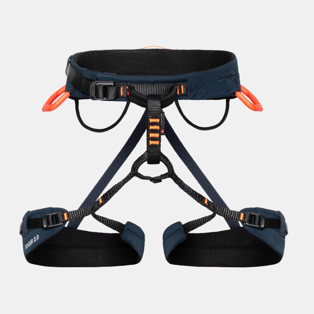 Reducing weight was a key focus for the new edition of our popular all-rounder: only the primary gear loops are reinforced, making them especially easy to clip, while the rear ones are soft, making them even lighter. Together with two ice clipper slots, this harness offers plenty of rack space. The material and construction combine maximum comfort and freedom of movement, in a slim design with minimum weight. Whether on rocks, ice or mixed ascents, the Mammut Togir 2.0 3 Slide Harness Men – Marine will prove its worth, particularly on long tours. Adjustable leg loops also make it easy to slip on, even over thick layers of clothing.