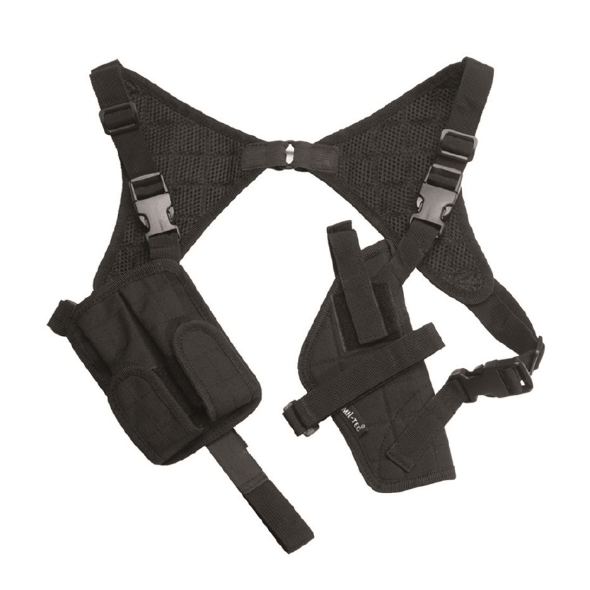 - Shoulder holster with vertical support and horizontal pulling way