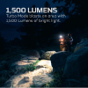 • Turbo (1,500 lumens) – 30 second intervals* / 129 meters
