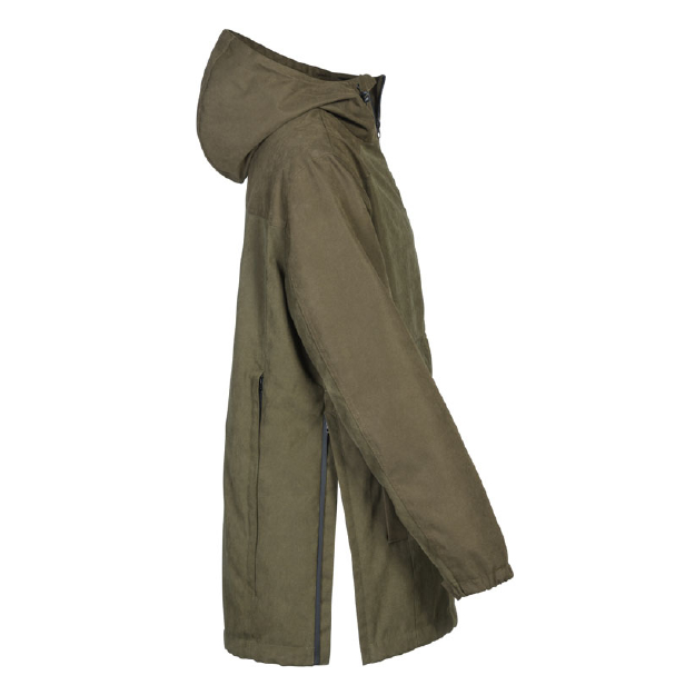 - Practical storage: The jacket includes two zipped hand-warmer pockets, a large zipped front or “belly” pocket, and a large game bag with a waterproof and washable lining on the back.