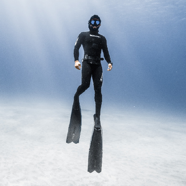 Seac Black Shark is a wetsuit for spearfishing, available in different thickness of neoprene, for hot and cold waters. It is made of nylon-lined neoprene on the outside and open cell neoprene on the inside, so it is recommended to soak the inside to avoid tearing the fabric. The Seac Black Shark spearfishing wetsuit is made of glued and stitched neoprene with comfortable raw cuts on the edge of the hood, wrists and ankles. It is a two-piece wetsuit, consisting of a hooded jacket and high-waisted pants. The neoprene jacket of the Seac Black Shark wetsuit features a beaver tail closure with two locks and a sternal protection in Melco Tape material for speargun loading. The pants have Powertex fabric protections on the knees and shins. The Seac Black Shark spearfishing wetsuit is available in 7mm, 5mm and 3mm neoprene; jacket and pants sold together. Always rinse after use.